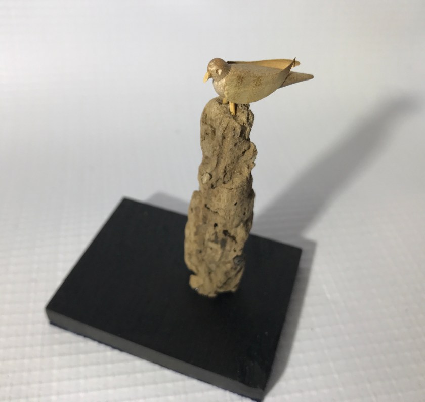 Hand crafted small wooden bird, stabilised driftwood pile, prepared hardwood base.#driftwood #driftwoodart #seascape #landscape #seaside #seagull